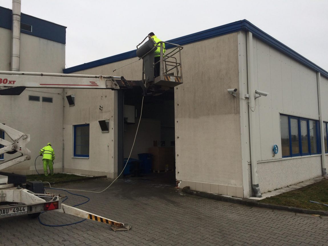Mytí plechové fasády výrobní haly společnosti Mölnlycke Health Care v Karviné bylo pro nás výzvou. Vše jsme museli stihnout za jeden den, a to v sobotu. Požadavek klienta, mytí fasády, jsme splnili na výbornou. Práci jsme stihli s nasazením 5 pracovních plošin a 10 mycích strojů ke vší spokojenosti klienta, ať už co se týče rychlosti, tak i kvality provedené práce.